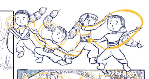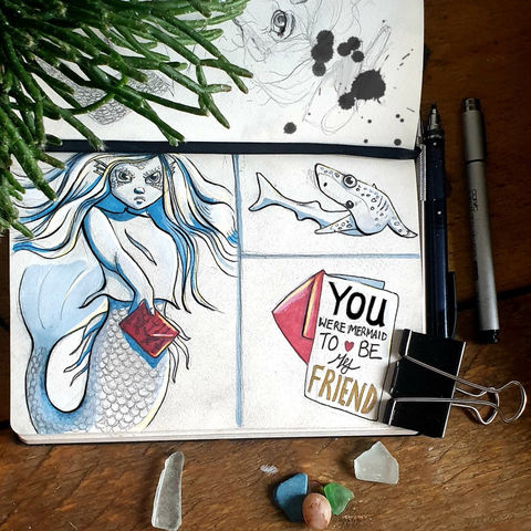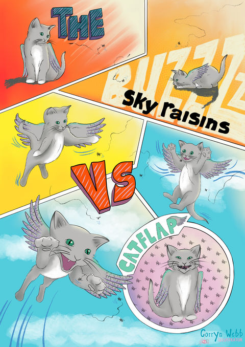 These are a small section taken from my debut mid-grade graphic novel. Set in a post-apocalyptic world of mythical creatures, deadly mushrooms, and shapeshifting deities, MoJo is a bittersweet and humorous exploration of grief and friendship about a young (non-binary) witch called Mo and their sharp-tongued animal familiar, Jo.