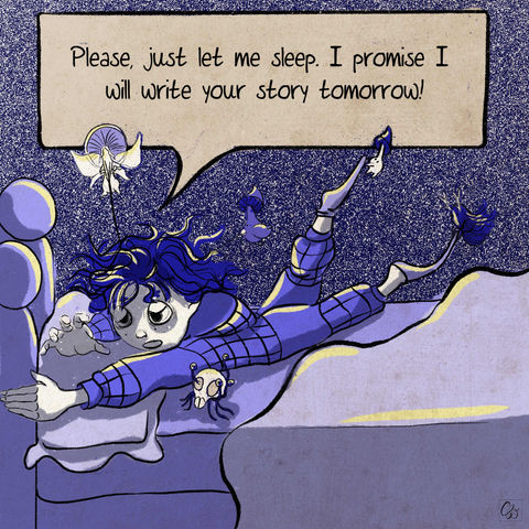 Whilst writing my graphic novel, grappling with learning about synopses, character arcs, agent packages and more I would psych myself up for the more daunting tasks by creating a little one-panel comic and these are the ongoing results.